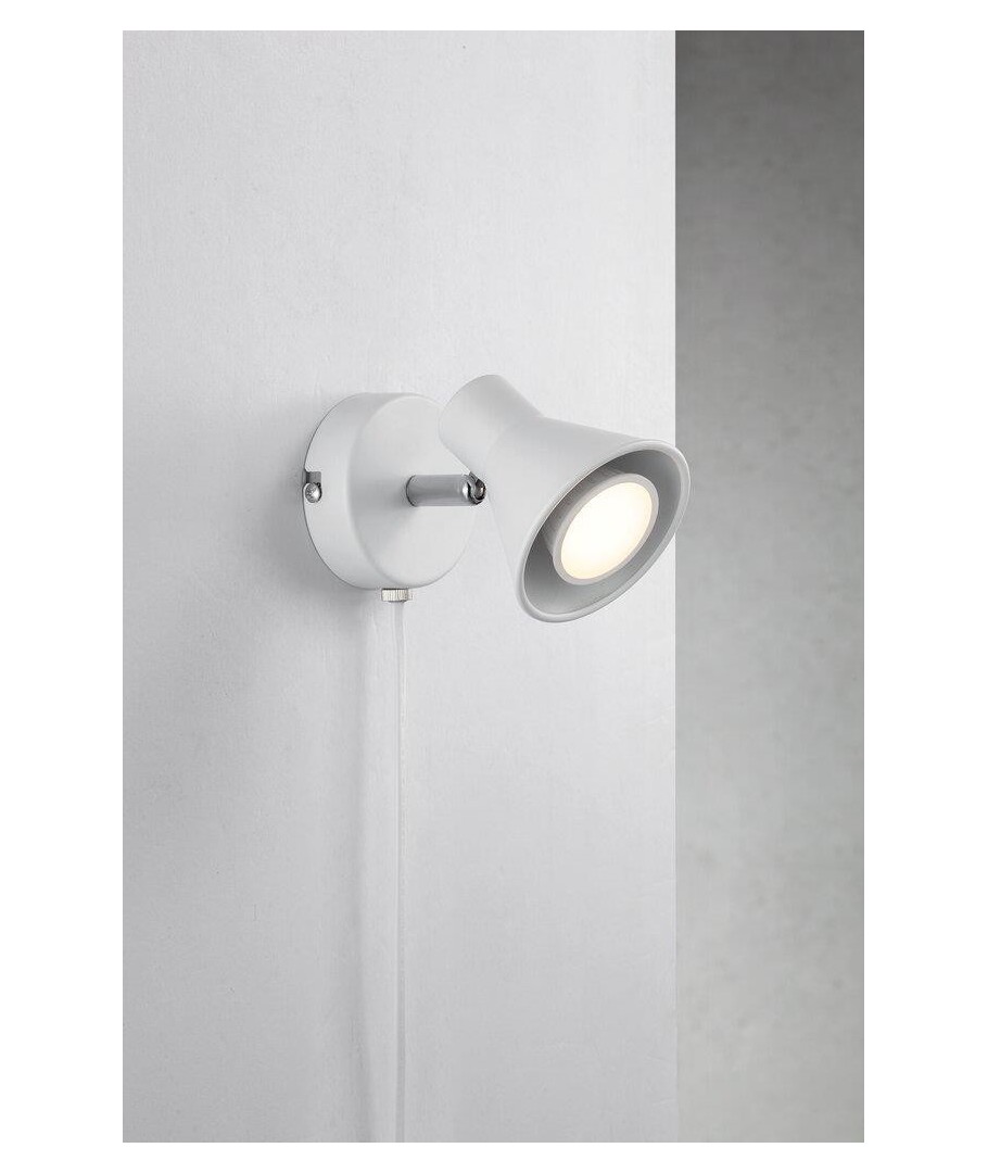 Diskret och praktisk spotlampa med en spot i vitt. Denna spotlampa kan placeras på olika ställen i hemmet och skapa fokus eller mys beroende på hur den placeras.