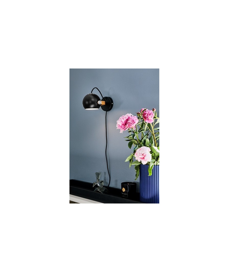 Denna vägglampa i stilfull svart och ek finish erbjuder en kombination av modern design och tidlös elegans. Perfekt för den som söker efter ett subtilt men samtidigt distinkt inslag i hemmets inredning.