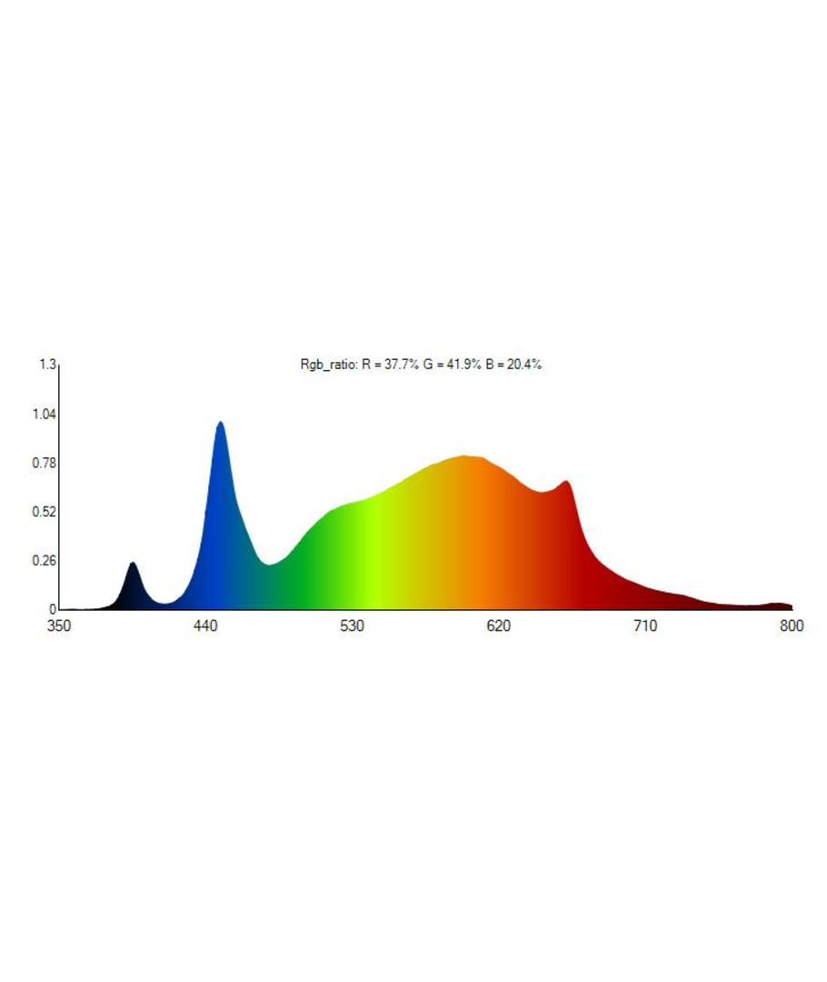 PAR (centralt värde): | 605 ppfd 30cm 582 ppfd 46cm 426 ppfd 60cm |