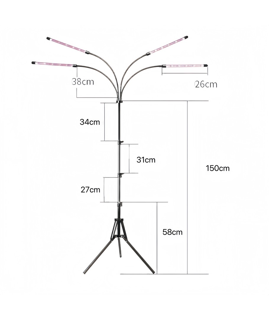 Detta gör det enkelt att ställa in lamporna för växter i olika riktningar och höjder samtidigt.