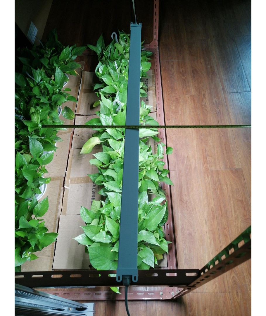 Den integrerade fullspektrumljuskällan efterliknar naturligt dagsljus vilket är utmärkt för växter. Armaturens kompakta dimensioner på 480 x 28 x 50 mm gör den lätt att installera och passa in i olika miljöer.