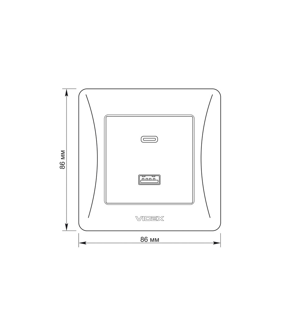 Dimensioner: 86 x 86 mm.