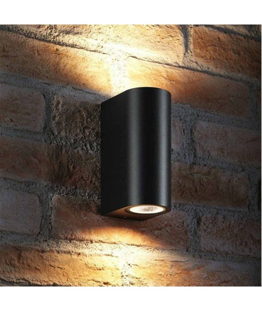 Med en solid konstruktion och IP54-klassning, är denna armatur robust nog för att motstå fuktig luft och vattenstänk, vilket gör den idealisk för användning på fasader i olika klimatförhållanden. Den stilrena svarta designen ger ett modernt och elegant utseende som smälter in väl i alla exteriörer.