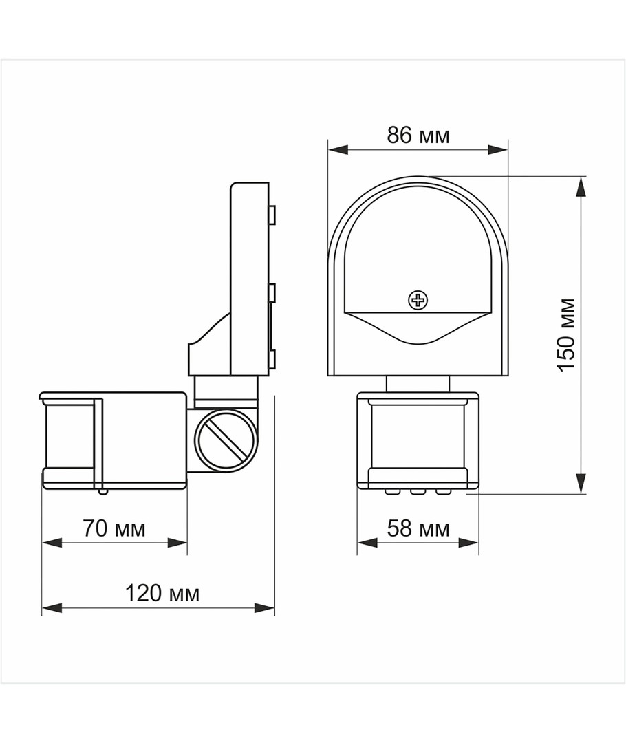 Sensorn har kompakta mått på 120 x 150 x 86 mm, vilket gör den lätt att installera och diskret i sitt utförande.