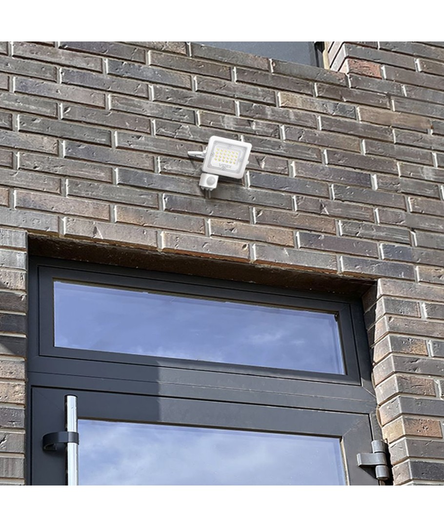Försedd med en rörelsesensor, vilket gör den idealisk för energieffektiv belysning i områden där ljus krävs endast när det faktiskt behövs. Perfekt för trädgårdar, uppfarter och andra utomhusmiljöer där kontrollerad belysning är avgörande.