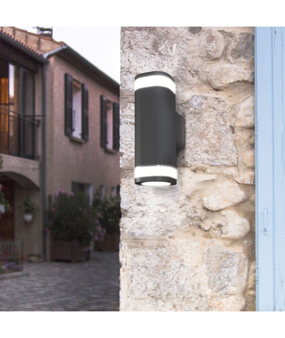 Armaturen är dubbelriktad, vilket innebär att ljuset sprids både uppåt och nedåt, vilket skapar en effektfull ljusbild på fasaden eller muren. Maximalt kan du använda 2x50W ljuskällor med GU10-sockel (ljuskällor ingår ej), vilket ger dig flexibilitet att välja ljusstyrka och ljuskvalitet enligt dina önskemål.