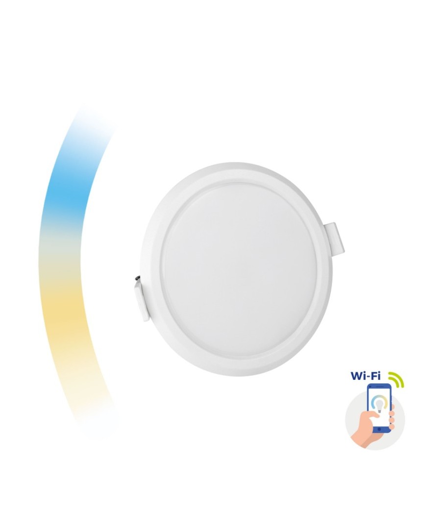 Vacker Smart Home infälld panel der kan växla mellan varm vit, neutral vit och kall vit med vit kant.