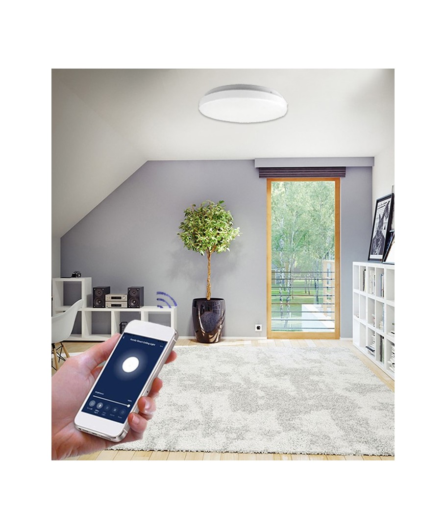 Denna smarta LED-takarmatur erbjuder modern och energieffektiv belysning för ditt hem. Med en effekt på 24W, ansluten till 230V, får du en ljusstark lampa som styrs enkelt via smarta enheter.
